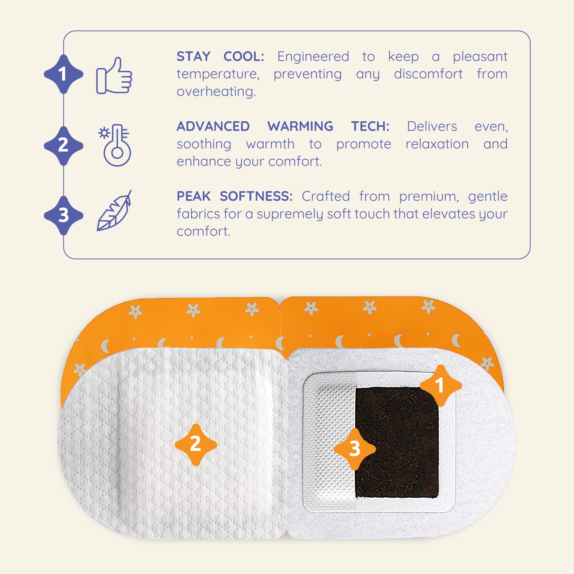 - Self-Heating Comfort: The eye pads gently warm up upon opening, providing soothing heat that lasts for 30-40 minutes, helping to relieve tension and fatigue around the eyes.