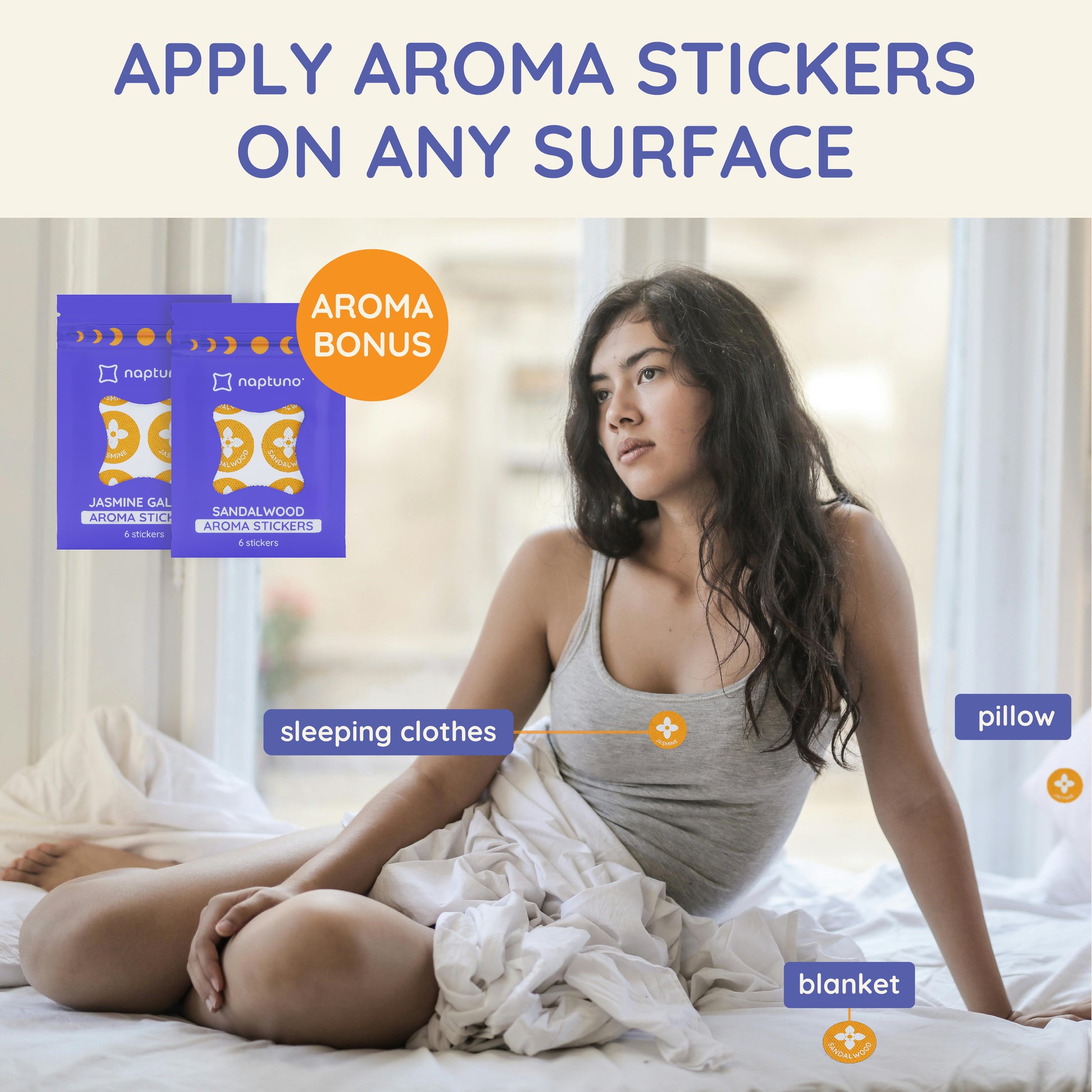 Join the Journey: Naptuno's Nebula Soothe Eye Pads and Aroma Stickers are designed to guide you through a celestial sleep experience each night. Embrace the warmth and let the distinct fragrances of Jasmine and Sandalwood transport you to a state of relaxation and renewal. Wake up refreshed and ready to embrace the day with a clear mind and a rested body.
